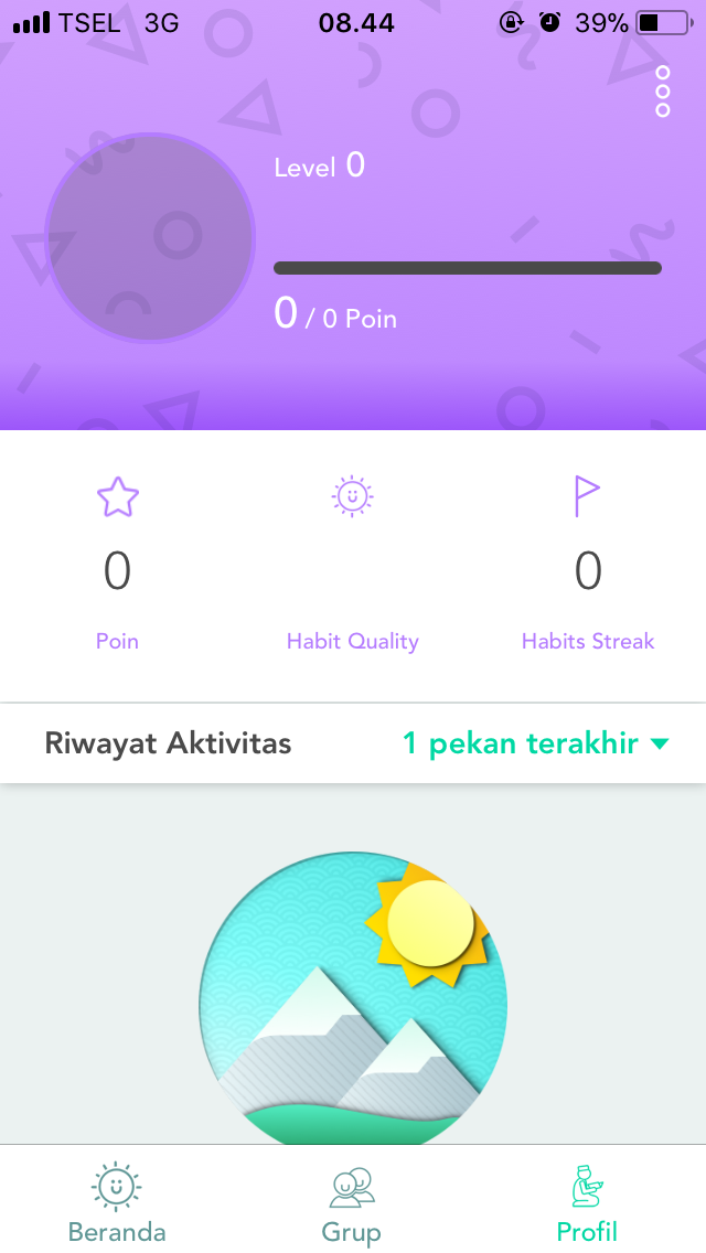 Setelah semuanya diatur dengan rapi dan apik, maka akan tampil profil diri yang tertera poin, kualitas kebiasaan, atau pun level. Level dan poin hanya parameter buatan yang dapat membantu kamu mengukur kemampuan.